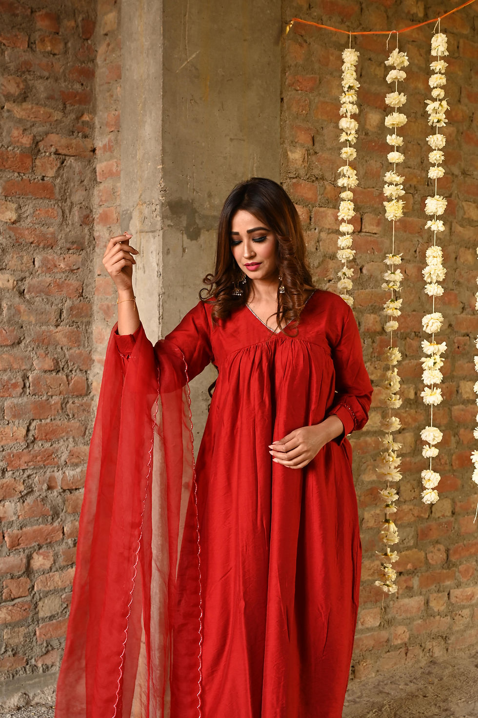 While the crisp wind blows, let the organza dupatta with blooming tassels crafted with love, snuggle you in warmth and comfort of plush fabrics and relaxed silhouettes.